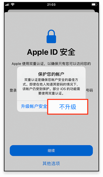 切记!在 Apple ID 安全页面点击 其他选项,若没有此提示请忽略;